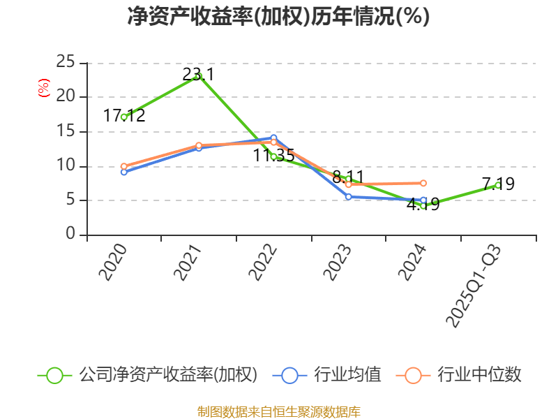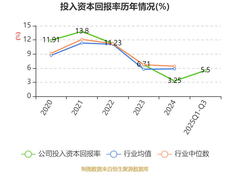 盈利能力方面, 2025年前三季度公司加权平均净资产收益率为7.19%,同比上升4.37个百分点。公司2025年前三季度投入资本回报率为5.5%,较上年同期上升3.18个百分点。