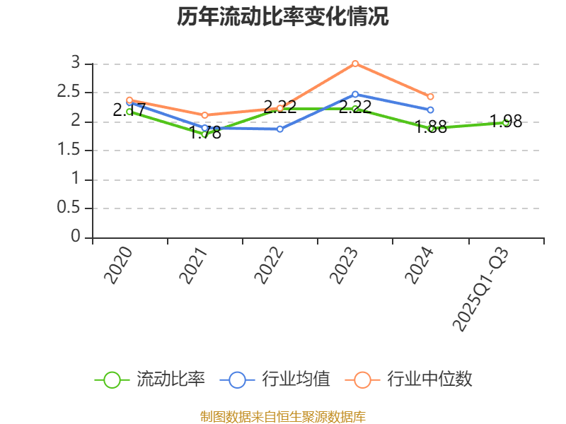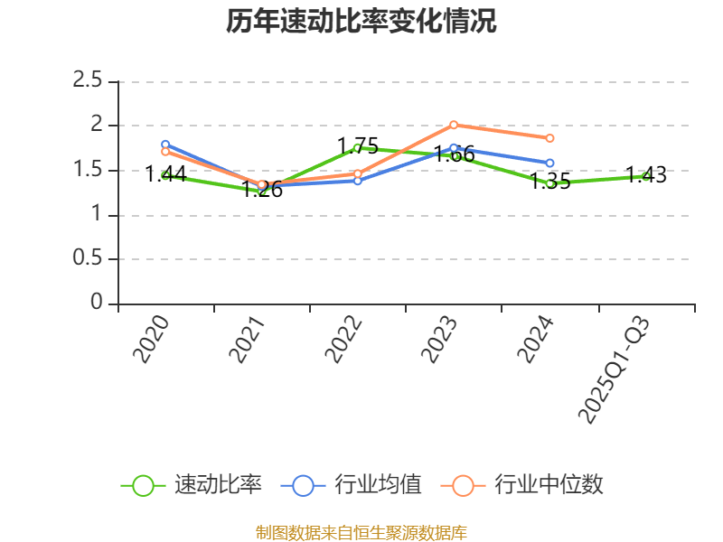 2025年前三季度,公司流动比率为1.98,速动比率为1.43。