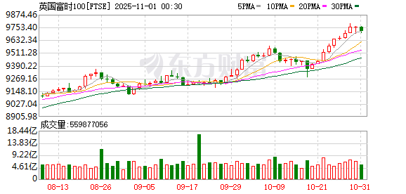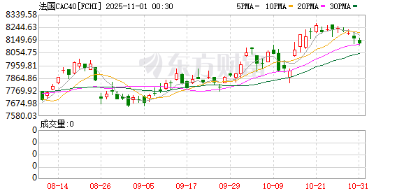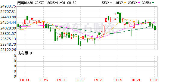 欧股市场:欧洲三大股指10月31日全线下跌。英国伦敦股市《金融时报》100种股票平均价格指数报收于9717.25点,较前一交易日下跌42.81点,跌幅为0.44%;法国巴黎股市CAC40指数报收于8121.07点,较前一交易日下跌36.22点,跌幅为0.44%;德国法兰克福股市DAX指数报收于23958.3点,较前一交易日下跌160.59点,跌幅为0.67%。