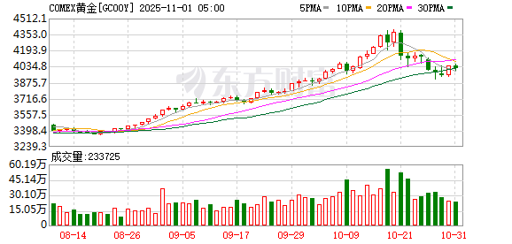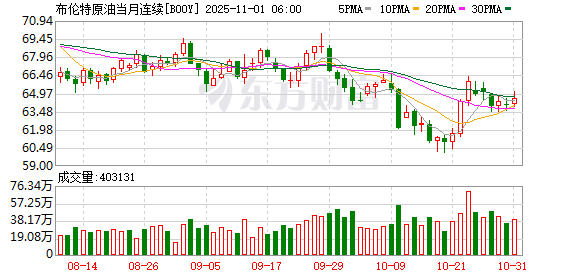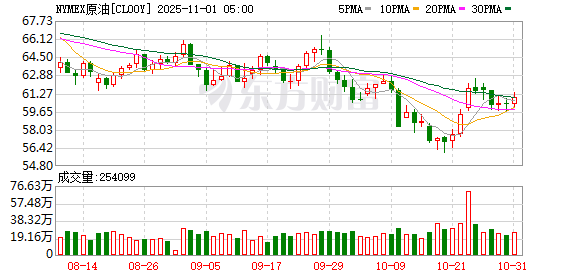 商品市场:国际油价10月31日上涨。截至当天收盘,纽约商品交易所WTI原油期货当月连续合约结算价上涨0.41美元,收于每桶60.98美元,涨幅为0.68%;伦敦布伦特原油期货当月连续合约上涨0.40美元,收于每桶64.77美元,涨幅为0.62%。COMEX黄金期货当月连续合约结算价下跌19.40美元,跌幅0.48%,报3996.5美元/盎司。
