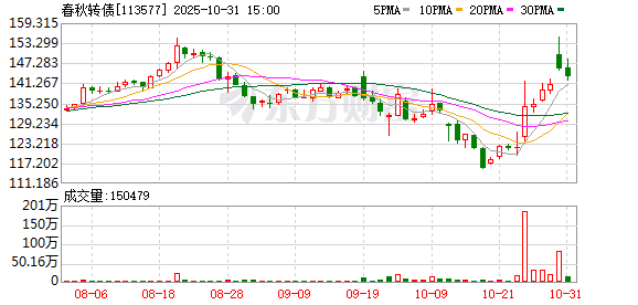 截至10月31日收盘,春秋转债收盘价为143.264元/张。对照强赎价格,投资者若是未及时操作,或将亏损超29%。截至目前,春秋转债仍有0.37亿元余额尚未完成交易或转股,所占比例超过15%。