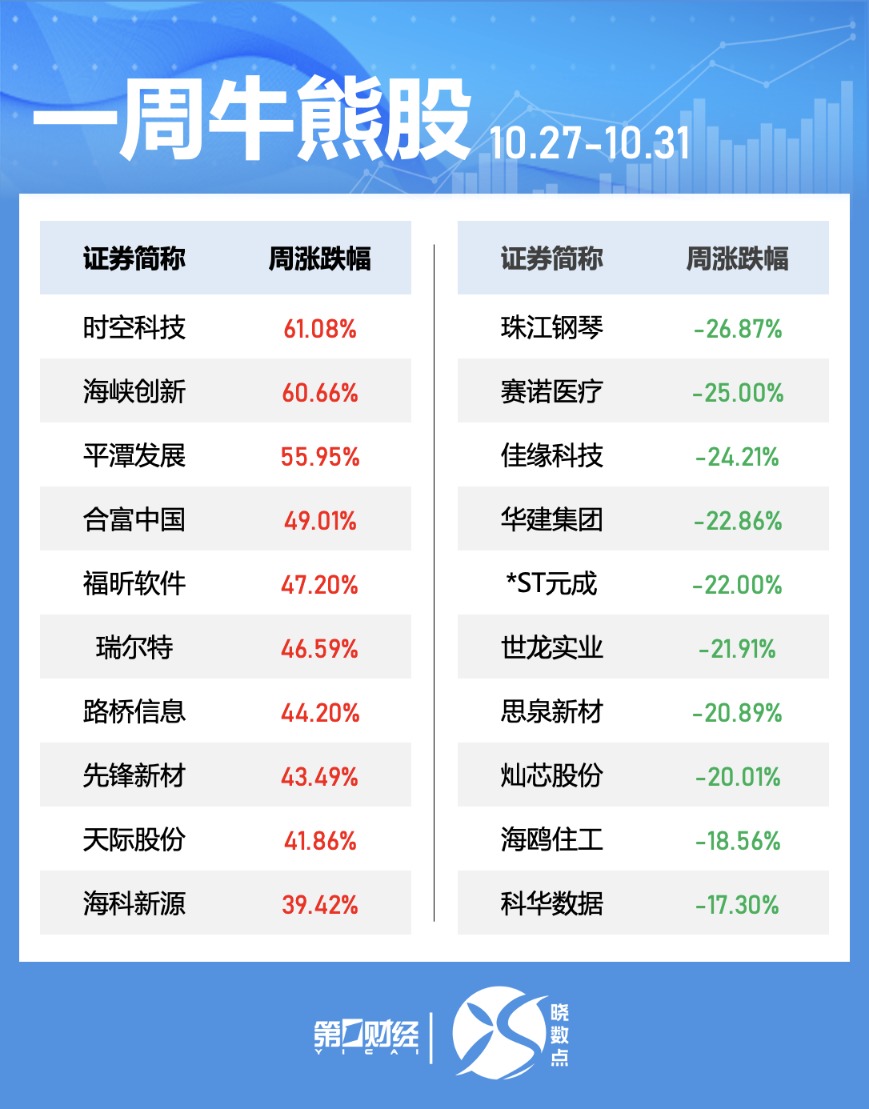 数据显示,本周共有23只个股涨幅30%。时空科技、海峡创新累计涨超60%,其中,时空科技已经走出8连板行情,公司提示,公司主营业务以夜间经济和智慧城市两大业务体系为核心,业务覆盖景观照明、文旅夜游、智慧路灯及智慧停车运营等领域,目前公司主营业务未发生重大变化。