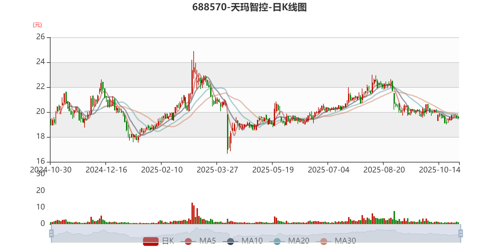 中证智能财讯天玛智控(688570)10月30日披露2025年第三季度报告。前三季度公司实现营业总收入10.81亿元,同比下降11.01%;归母净利润7884.81万元,同比下降71.87%;扣非净利润6646.51万元,同比下降73.70%;经营活动产生的现金流量净额为-1122.97万元,上年同期为1.26亿元;报告期内,天玛智控基本每股收益为0.18元,加权平均净资产收益率为1.83%。