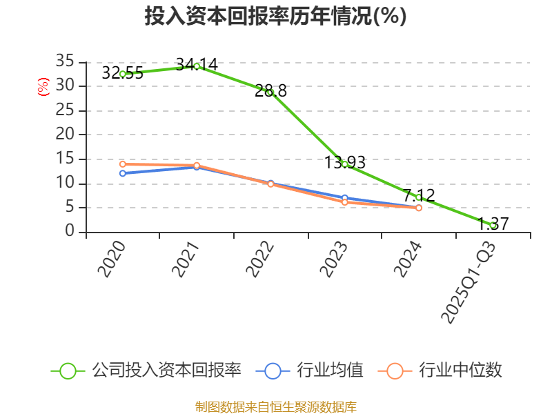 盈利能力方面, 2025年前三季度公司加权平均净资产收益率为1.83%,同比下降4.81个百分点。公司2025年前三季度投入资本回报率为1.37%,较上年同期下降4.6个百分点。