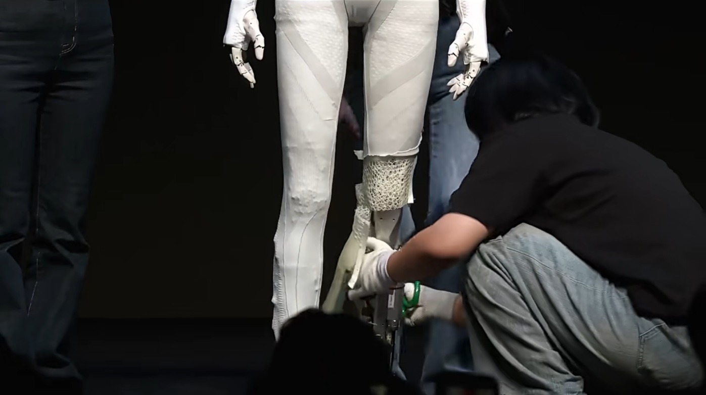 在昨晚举办的小鹏X9超级增程技术发布会上,小鹏再度就“IRON机器人内藏真人”质疑作出回应。过程中,小鹏机器人IRON先是走着猫步出场,随后由工作人员在通电情况下剪开其腿部覆盖件进行公开展示,包括腿部的晶格肌肉与机械结构一览无遗。