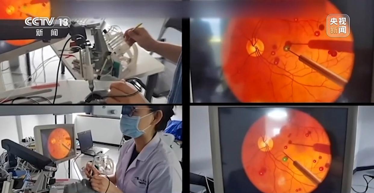 中山大学中山眼科中心主任林浩添:我们视网膜实际上100到300微米,大概这么一个厚度。这个厚度里面分十层,在其中两层之间打这个药,是特别难的操作。远程靠机器人做,在国内国外、在全球都是首例。它的精准度、精细度,是一个质的飞跃。