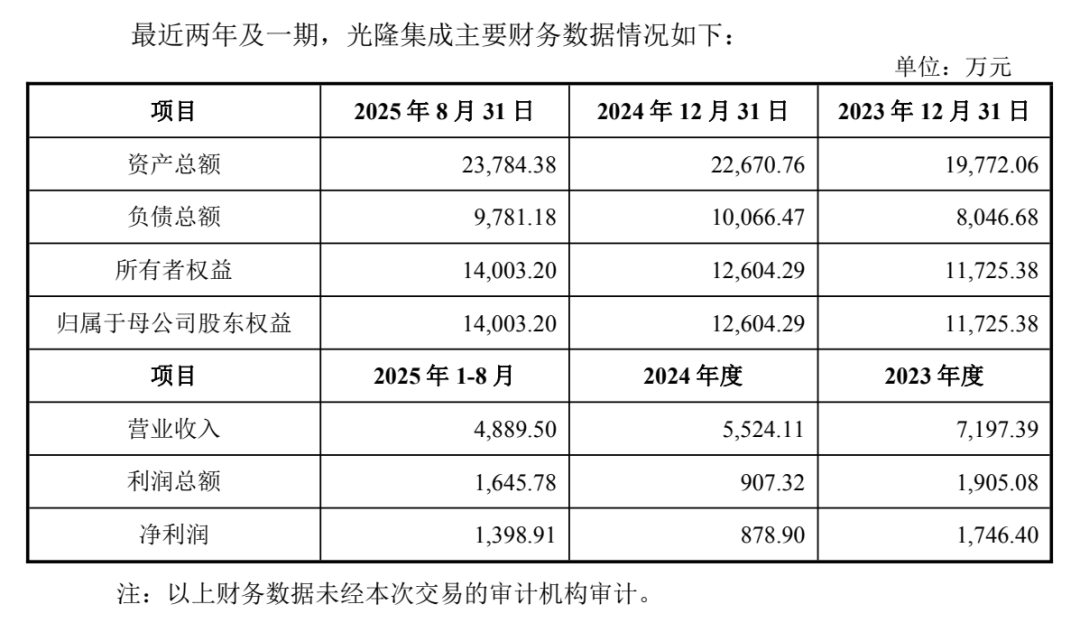 近日,英唐智控(300131.SZ,股价11.42元,市值129.62亿元)公告称,拟通过发行股份及支付现金的方式购买光隆集团持有的光隆集成100%的股权,以及从简企业、涵简企业、深圳外滩、高志宇、北京静水、浦简企业6名股东持有的奥简微电子80%的股权;同时,拟向其他不超过35名特定投资者发行股份募集配套资金。本次交易完成后,光隆集成将成为上市公司全资子公司;奥简微电子将成为上市公司控股子公司。公司股票将于2025年11月10日复牌。