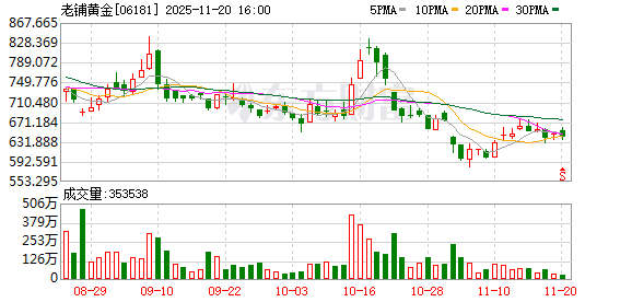 另一只新消费龙头——蜜雪集团在6月初股价突破610港元/股后,便一路震荡下跌,11月20日收盘跌至407.2港元/股。此外,老铺黄金股价今年7月份曾接近1100港元/股,11月20日收盘跌至642港元/股,其在11月初一度跌破600港元/股。