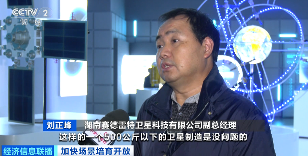 湖南赛德雷特卫星科技有限公司副总经理刘正峰:我们可以满足一年产能100颗到150颗500公斤以下的卫星制造。应用领域很广泛,包括遥感、通信、深空探测都可以实现。