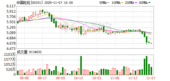 财报发布后的第一个交易日(11月25日),中国旺旺盘中最高跌超6.5%,最后以4.71港元/股收盘,下跌4.27%。与此同时,公司核心业务增长疲软、费用高企等问题引发市场关注。