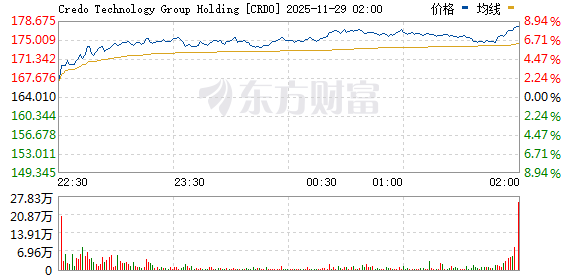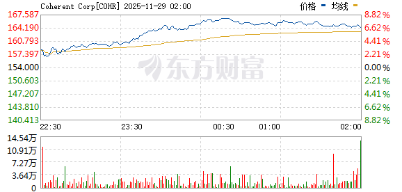 光通信板块再度活跃,Credo Technology涨超8%,Coherent涨超6%,Lumentum涨超5%再创新高。