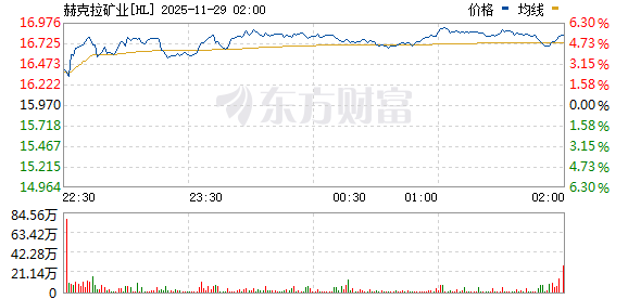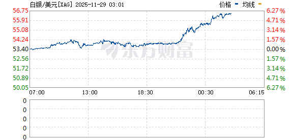 现货白银日内涨超5%,报56.11美元/盎司,再刷新记录新高。白银矿商跟随白银上涨,赫克拉矿业涨超5%。