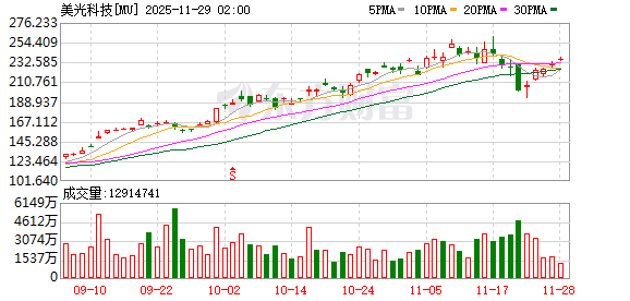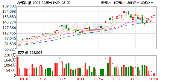 美股存储概念股大涨,美光科技涨近8%,闪迪涨超13%,西部数据涨超8%,希捷科技涨超6%。