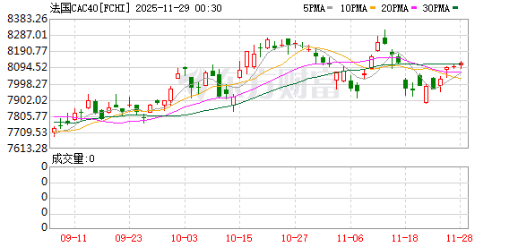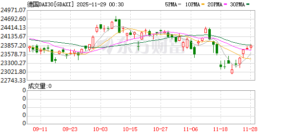 欧股市场:欧洲三大股指11月24日涨跌不一。英国伦敦股市《金融时报》100种股票平均价格指数报收于9534.91点,较前一交易日下跌4.8点,跌幅为0.05%;法国巴黎股市CAC40指数报收于7959.67点,较前一交易日下跌22.98点,跌幅为0.29%;德国法兰克福股市DAX指数报收于23239.18点,较前一交易日上涨147.31点,涨幅为0.64%。