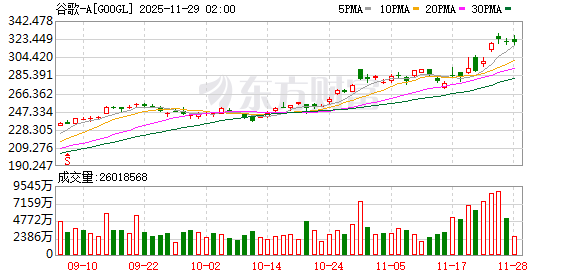 第3名谷歌A类股收高0.07%,成交82.89亿美元。该股本周累计上涨6.85%,在11月份上涨13.87%,为连续第八个月录得涨幅。