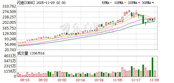 第13名闪迪收高3.83%,成交29.86亿美元。该股本周累计上涨11.49%,11月份上涨超过12%。
