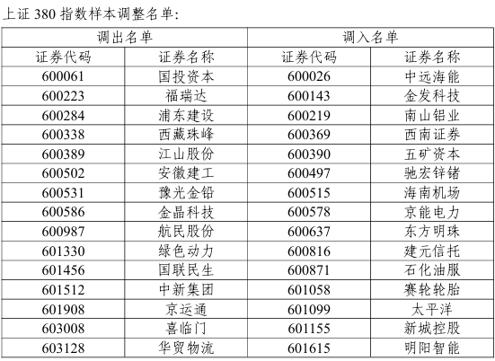 上证380指数更换38只样本,中远海能、金发科技、中海油服、佰维存储等调入指数。