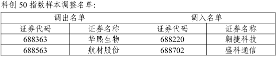 科创50指数更换2只样本,翱捷科技、盛科通信等调入指数。