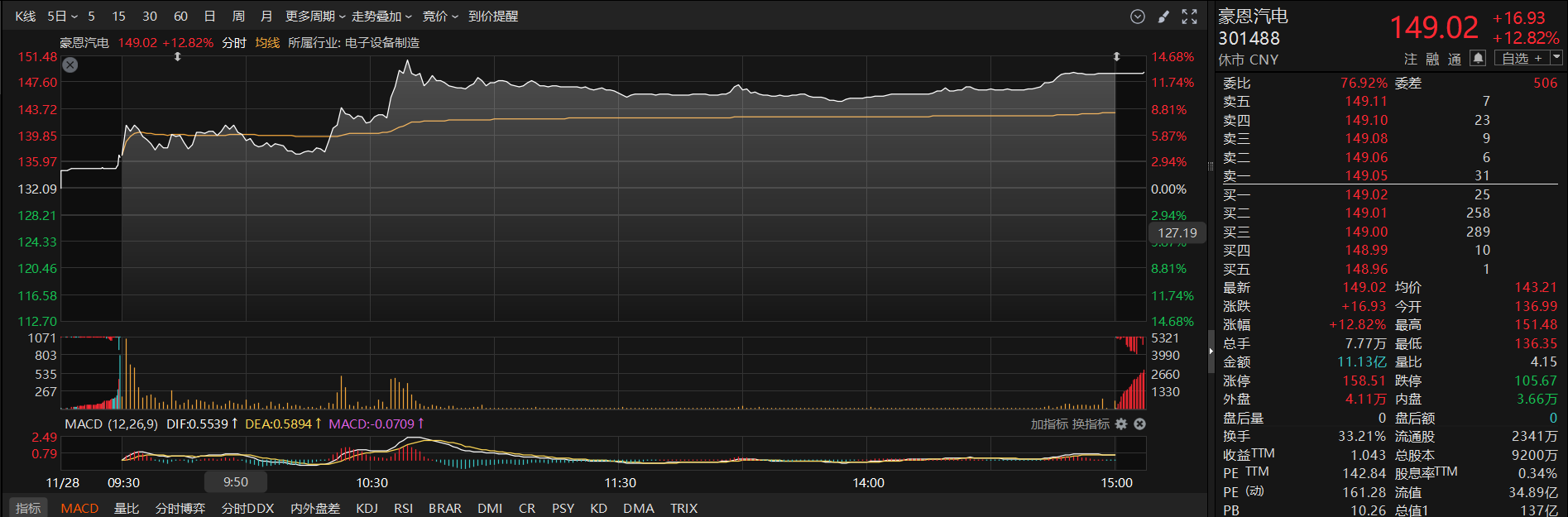 二级市场上,豪恩汽电周五收盘涨近13%。