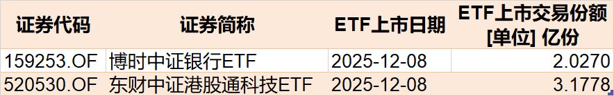目前有2只ETF披露下周上市,跟踪标的为银行、港股科技等。