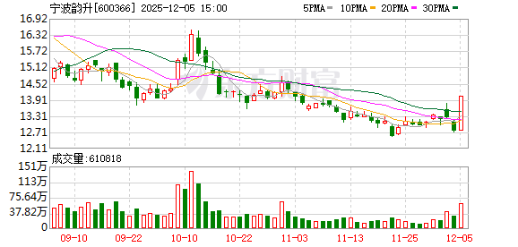12月5日,稀土永磁板块尾盘突然走高,宁波韵升(600366.SH)涨停,金力永磁(300748.SZ)、中科三环(000970.SZ)涨超5%跟涨。