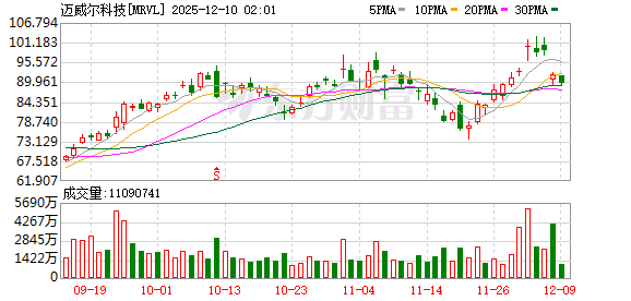 中金公司维持迈威尔科技(MRVL.O)跑赢行业评级,目标价120美元: