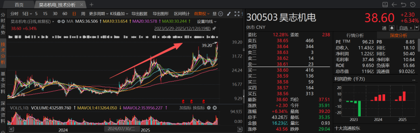 昊志机电的谐波减速器、无框力矩电机等产品可应用于人形机器人。东北证券谢佶圆等人在12月11日发布的研报中表示,昊志机电机器人业务打造第二增长曲线。昊志机电已经构建起“N+1+3”的机器人业务体系。昊志机器人成立于2024年,由昊志机电全资控股,专注于减速机等核心领域,当前相比国际17规格以下同类减速器,昊志机电的传动精度提升66.7%,振动峰值下降60%,声音强度降低约22.7分贝,达到世界领先水平,已送样头部人形机器人厂商测试。