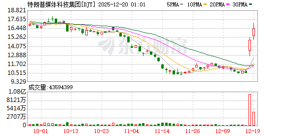 当地时间周四,特朗普媒体与科技集团(DJT)已同意与一家获得Alphabet支持的核聚变能源公司进行全股票交易合并,交易总价值超过60亿美元。此次合并将使双方共同建设一系列大型聚变发电厂,以满足人工智能(AI)浪潮带来的能源需求。周四,DJT股价大幅飙升,涨幅超过40%。