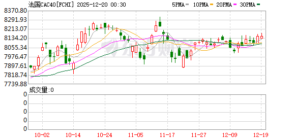 欧股市场:欧洲三大股指12月18日全线上涨。英国伦敦股市《金融时报》100种股票平均价格指数报收于9837.77点,较前一交易日上涨63.45点,涨幅为0.65%;法国巴黎股市CAC40指数报收于8150.64点,较前一交易日上涨64.59点,涨幅为0.8%;德国法兰克福股市DAX指数报收于24199.5点,较前一交易日上涨238.91点,涨幅为1.0%。
