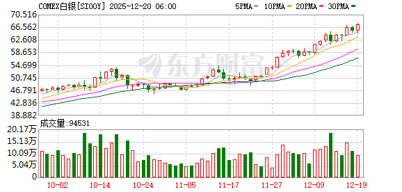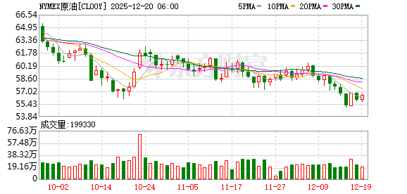 商品市场:国际油价12月19日上涨。截至当天收盘,纽约商品交易所WTI原油期货当月连续合约上涨0.54美元,收于每桶56.54美元,涨幅为0.96%。COMEX黄金期货当月连续合约上涨4.20美元,涨幅0.10%,报4368.7美元/盎司。COMEX白银期货收涨3.34%,报67.395美元/盎司,刷新历史纪录高位。