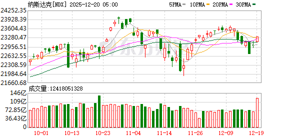 美股市场:美股三大指数12月19日收盘全线上涨。截至收盘,道琼斯工业平均指数比前一交易日上涨183.04点,收于48134.89点,涨幅为0.38%,本周累计跌0.67%;标准普尔500种股票指数上涨59.74点,收于6834.5点,涨幅为0.88%,本周累计涨0.10%;纳斯达克综合指数上涨301.26点,收于23307.62点,涨幅为1.31%,本周累计涨0.48%。