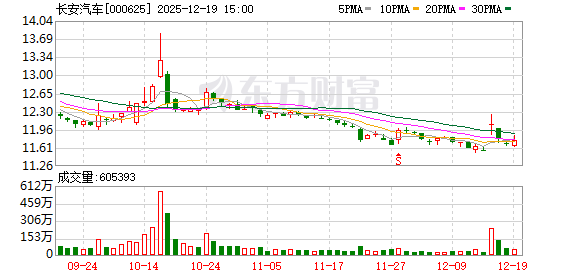 Wind数据显示,截至12月19日收盘,长安汽车股价报11.75元/股,总市值1035亿元。自12月15日以来,该公司股价累计涨幅为0.945%。
