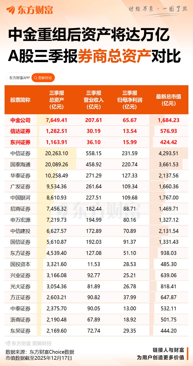 然而,规模跃升只是表象。有非银分析师指出,此次合并的关键逻辑并非简单的资产叠加,而是资源与能力的结构性互补。在业内人士看来,中金公司在资本运用、财富管理、跨境业务等方面的领先优势,将与东兴、信达在区域网络、特殊资产投行等领域的布局形成协同,强化竞争优势。