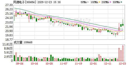 二级市场方面,民德电子股价今日上涨1.29%,本月涨幅为2.62%。