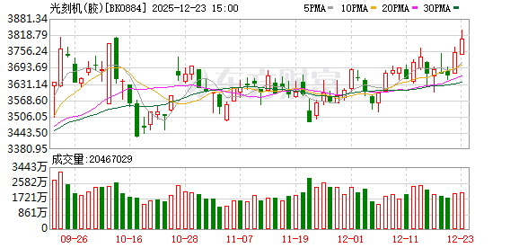 12月23日早盘光刻机板块表现强势,其中同飞股份、万润股份、东材科技、国风新材纷纷涨停,腾景科技、珂玛科技大涨超10%。