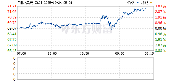 现货白银盘中涨破70美元/盎司,为历史首次,日内最大涨幅超2%。