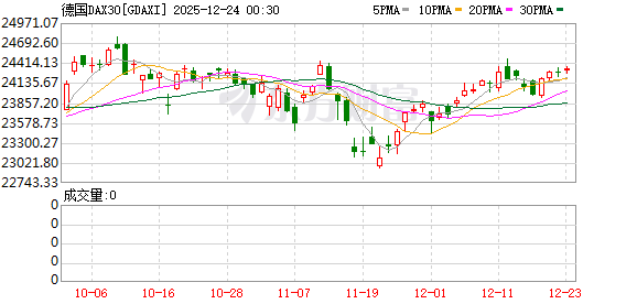 欧股市场:欧洲三大股指12月22日全线下跌。英国伦敦股市《金融时报》100种股票平均价格指数报收于9865.97点,较前一交易日下跌31.45点,跌幅为0.32%;法国巴黎股市CAC40指数报收于8121.07点,较前一交易日下跌30.31点,跌幅为0.37%;德国法兰克福股市DAX指数报收于24283.97点,较前一交易日下跌4.43点,跌幅为0.02%。