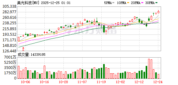 大型科技股涨跌不一,美光科技涨超4%创历史新高,特斯拉、英伟达涨超1%,谷歌、亚马逊、Meta小幅上涨;英特尔、奈飞跌超1%,苹果、微软小幅下跌。