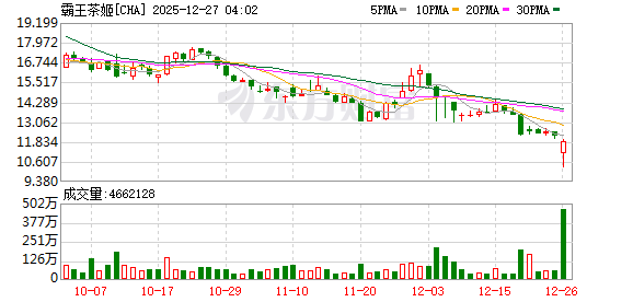 北京时间12月26日晚间美股开盘后,霸王茶姬美股大跌,盘中一度跌超14%,股价创上市以来新低。截至发稿,跌幅有所收窄。