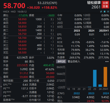 此外,2022年、2023年、2024年及2025年上半年,轻松健康的收入分别为人民币3.936亿元、人民币4.9亿元、人民币9.45亿元、人民币6.561亿元。同期,轻松健康的经调整净利润(非国际财务报告准则计量)分别为人民币1.492亿元、人民币1.466亿元、人民币8440万元、人民币5120万元。