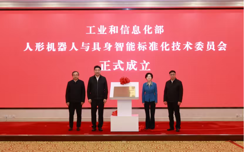 12月26日,工业和信息化部人形机器人与具身智能标准化技术委员会(以下简称“标委会”)在北京正式成立。在成立大会现场,工业和信息化部副部长柯吉欣,全国政协常委、致公党中央副主席、全国妇联副主席、中国电子学会理事长徐晓兰,工业和信息化部总工程师、标委会主任委员谢少锋,中国电子学会理事会党委书记张峰共同为标委会揭牌。