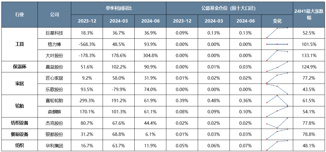 历史来看,尽管行业不同,但彼此共享全球总需求这一个β,因此股价同步性较强。这类品种在全球制造业回升,海外补库周期开启时往往会迎来较强的利润弹性,股价迎来主升浪,机构也会大幅增配。典型行情如20年下半年全球疫后修复、中国供应链填补海外缺口,以及24年上半年美国补库存开启。