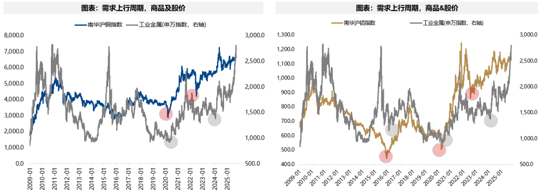 需求周期中,资源股的表现通常滞后于商品,但一旦确立趋势之后,上涨弹性更大。