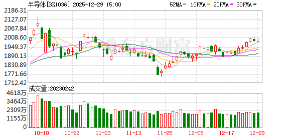 近期,半导体芯片股反复活跃。12月29日盘中,半导体指数涨幅一度超过1.5%。个股方面,迈为股份高开高走,盘中一度触及20%涨停,东微半导一度涨超12%,寒武纪一度涨超7%,伟测科技、源杰科技一度涨超10%。
