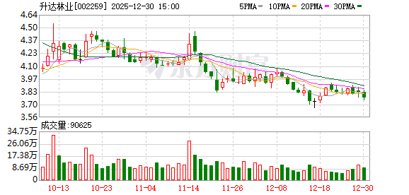 二级市场上,截至12月26日收盘,升达林业下跌1.30%报3.81元/股,总市值约28.66亿元,今年来公司股价累计上涨超六成。
