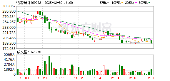 如果把视角再拉远一些,类似的降温也出现在资本市场。自8月下旬创下339.8港元的阶段性高点后,泡泡玛特股价一路回落,截至12月中旬跌至约189港元,累计跌幅超过40%,市值蒸发逾2000亿港元。