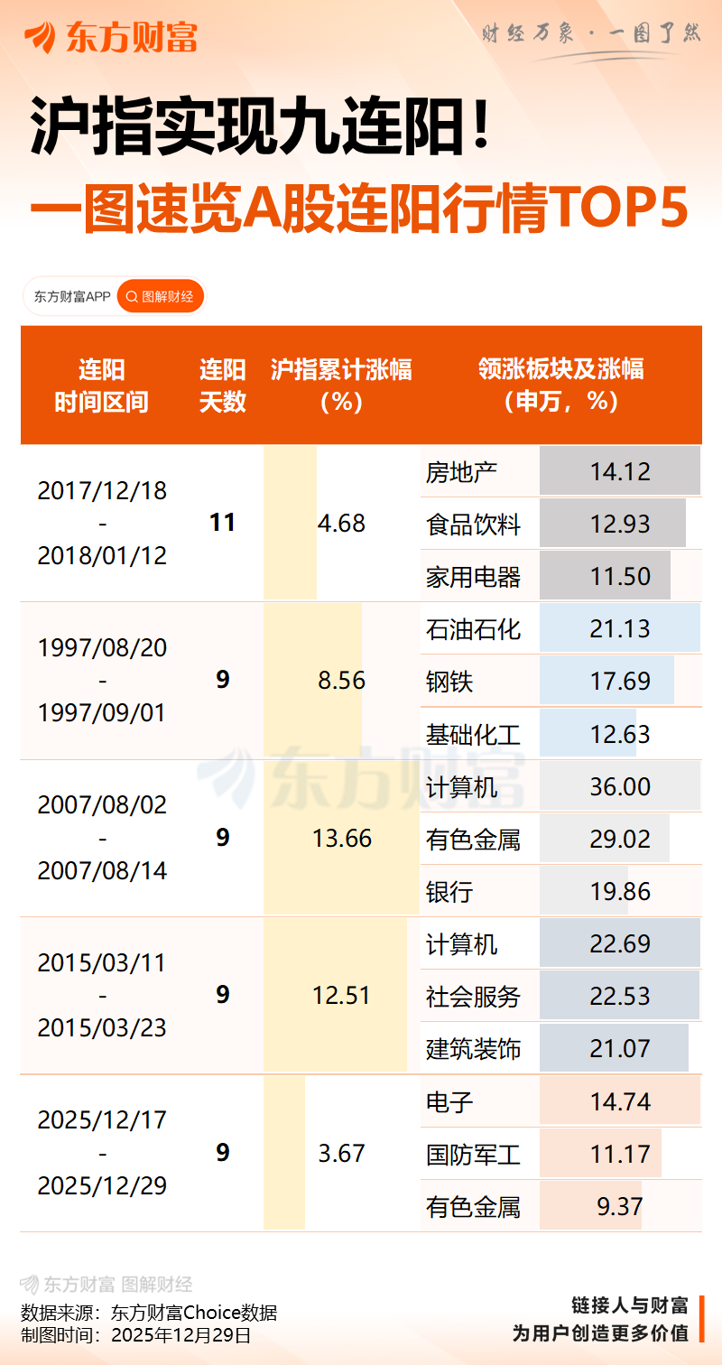 12月29日,中信建投证券最新研报指出,经历了此前中期调整的完成,近期上证指数八连阳传递了积极信号,中信建投认为A股跨年行情已经启动。在机构投资者的一致乐观预期下,明年春季躁动行情有望提前;海外AI模型调整结束,美国战略重心西迁,海外流动性和风险持续改善;近期十五五产业政策与事件密集发布,投资者政策预期高涨;以上三大预期共同推动市场跨年行情启动。中期行业配置方面,重点关注具有一定景气催化的有色金属和AI算力,市场热点仍然以商业航天为主,次要热点主线包括海南自贸区、可控核聚变和人形机器人。