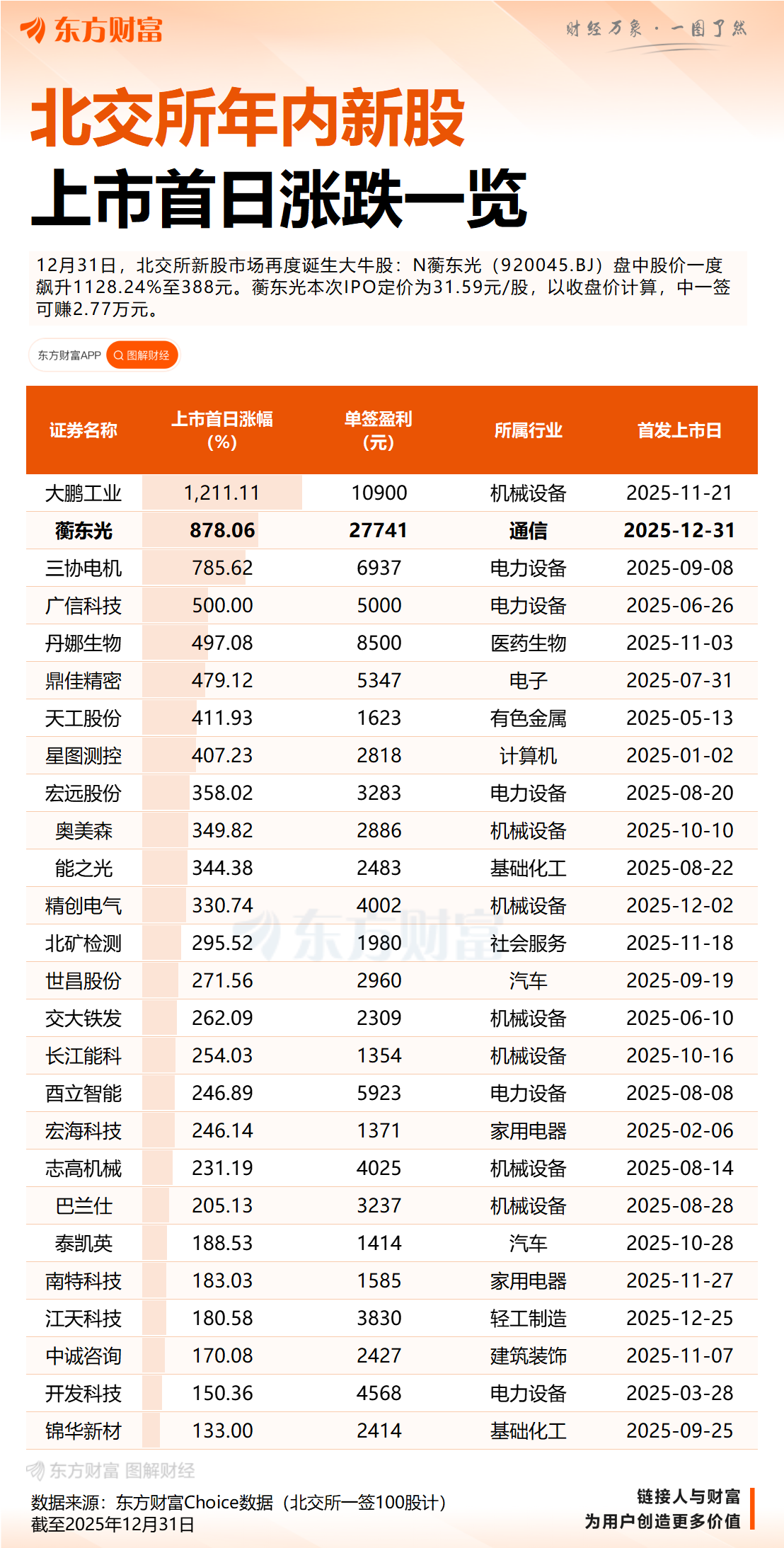 今早(12月31日),北交所新股N蘅东光高开超1000%,报350元。随后,股价还有拉升,一度暴涨超1100%,每手新股最多盈利超3.5万元。另一只新股N新广益盘中扩大涨幅至285%,触发临停,随后一路飙升超330%,成交额突破12亿元。