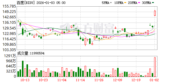 受到利好消息影响,1月2日百度集团港股大涨,截至发稿,涨幅为6.92%,目前总市值3867亿港元。