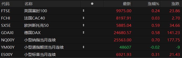 周一盘前,美股三大股指期货涨跌不一,欧洲主要指数普遍上涨。截至发稿,纳斯达克100指数期货涨0.70%,道指期货跌0.02%,标普500指数期货涨0.31%。